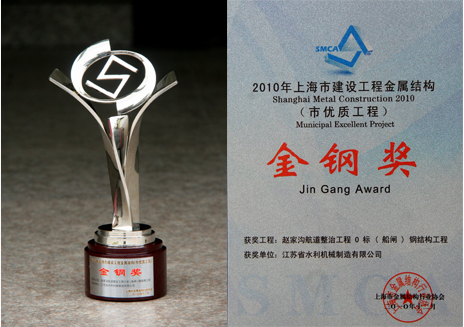 我公司承建的上海趙家溝航道整治工程(船閘)鋼結(jié)構(gòu)工程榮獲上海市優(yōu)質(zhì)工程金鋼獎(jiǎng)