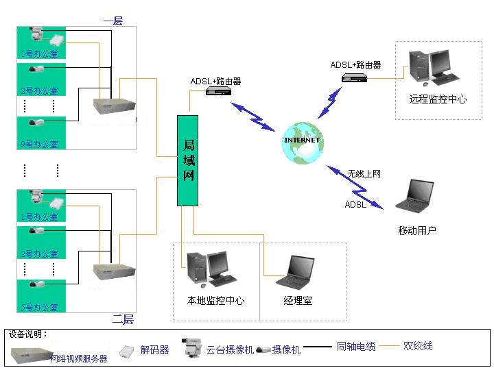 1、可以利用企業(yè)內(nèi)部現(xiàn)有的局域網(wǎng)來(lái)傳輸視頻圖像,只需要布少量視頻線(xiàn),使整個(gè)系統(tǒng)的安裝變得非常簡(jiǎn)單。