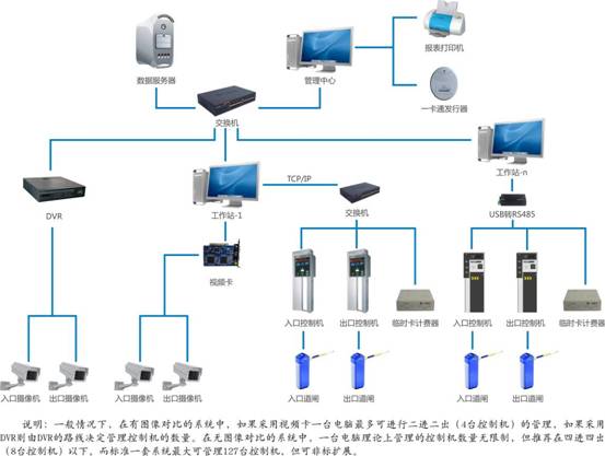 工作站:實時監(jiān)控停車場的出入口,控制車輛進出并收費;